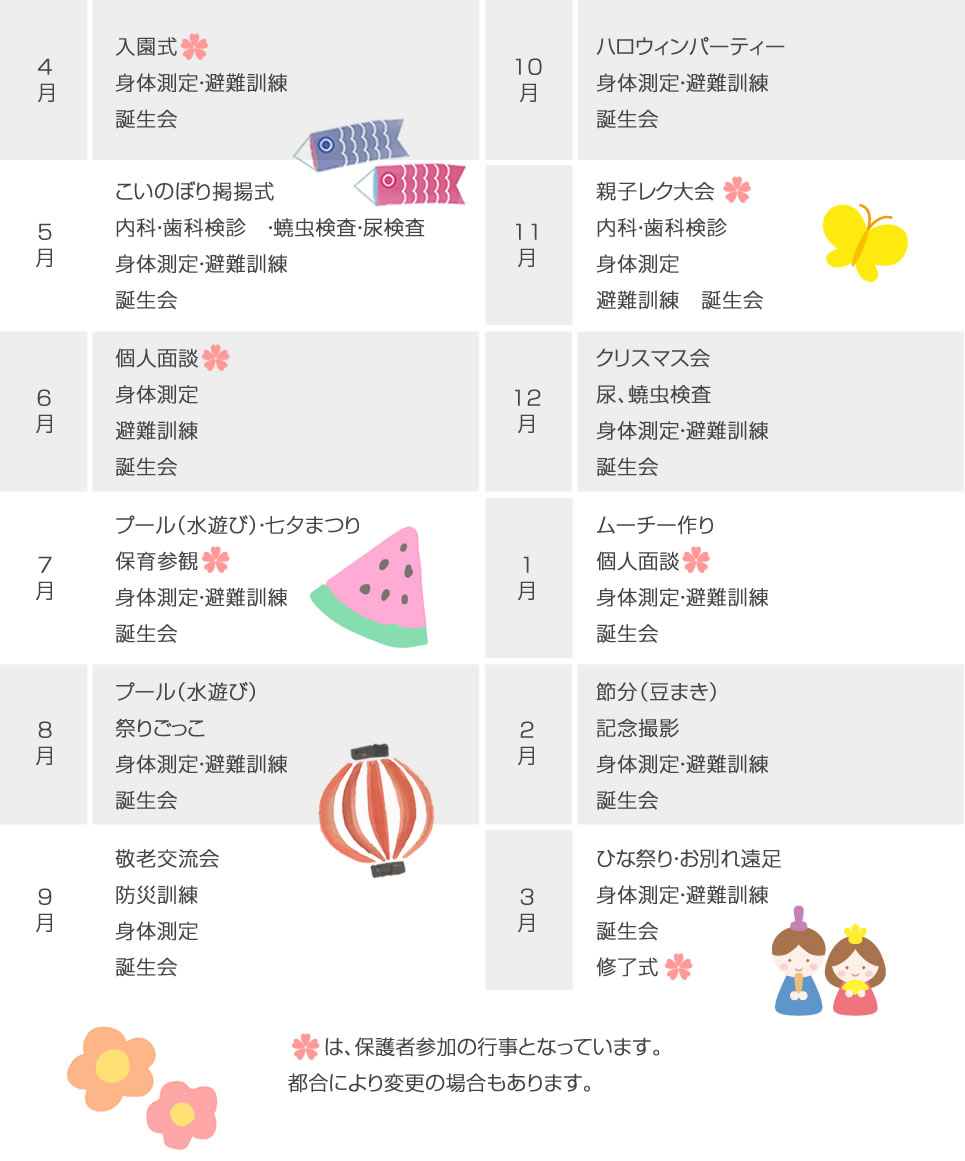 年間スケジュールさくら保育園の行事